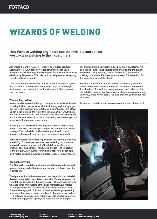Download whitepaper to read more about why Fortaco’s Kalajoki plant excels in welding.